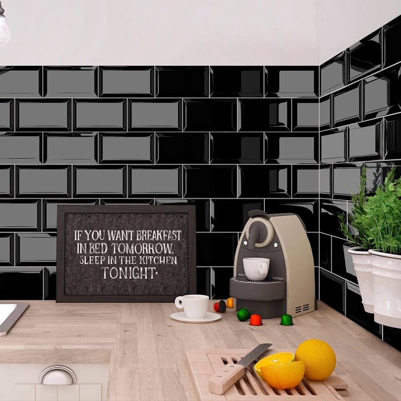 Azulejo Subway Negro Brillante Biselado 7,5×15 cm Importado