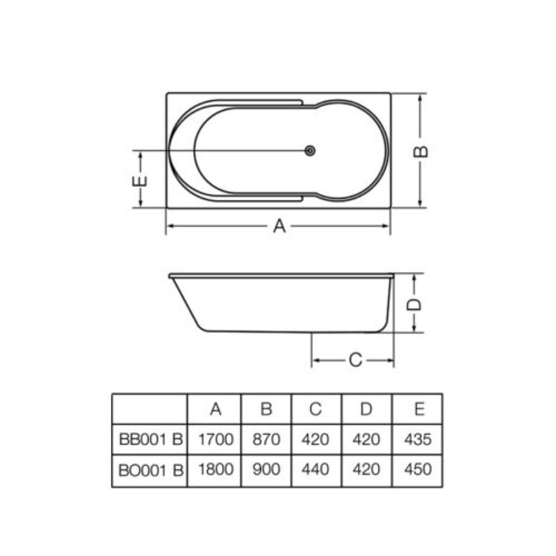 Bañera con Hidromasaje Carilo Eq Base v/cro H-CAR-17-08-B-D