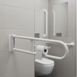 Barral de acceso rebatible con portarrollo de 70 cm x 25 cm blanco