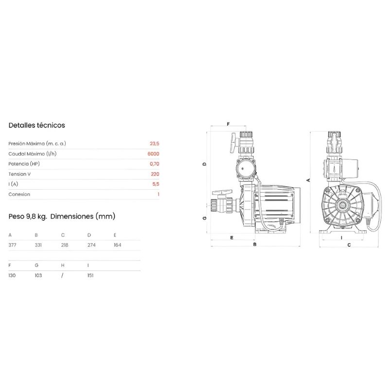 – Pérdida de carga máxima en succión: 4 m.c.a.