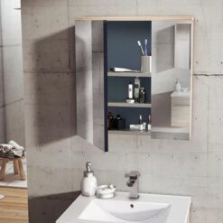 Este práctico botiquín combina funcionalidad y diseño con su estructura de doble puerta, perfecto para optimizar el espacio de almacenamiento en baños. Los espejos en ambas puertas aportan un toque moderno y ayudan a ampliar visualmente el ambiente, mientras que su interior ofrece compartimentos ideales para organizar tus productos de cuidado personal. Una solución estética y eficiente para cualquier baño.