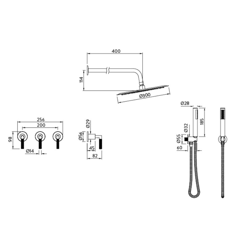 Incluye: * Flor de ducha principal (cuadrada, acorde a la línea).