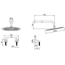 Incluye: Flor de ducha cuadrada anticalcárea y brazo de ducha a pared.