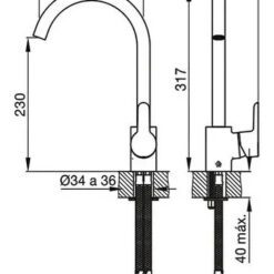 Juego monocomando para mesada de cocina. Líneas Monocomando. Caudal mínimo de salida a presión estática 0.4 BAR y