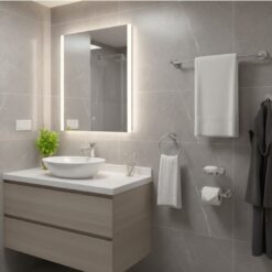 Jabonera de Pared: Incluye plato de vidrio esmerilado desmontable.