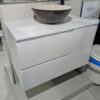 Lavatorio sobre encimera. Admite grifería de repisa de caño alto o grifería de pared.