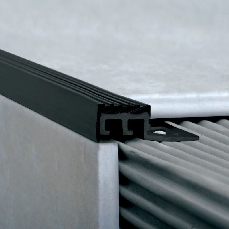 Perfil protector de PVC de alta densidad de 10 mm ofrece una terminación prolija, recomendado para zonas de bajo tránsito. La base es rígida con un recubrimiento de PVC flexible antideslizante.