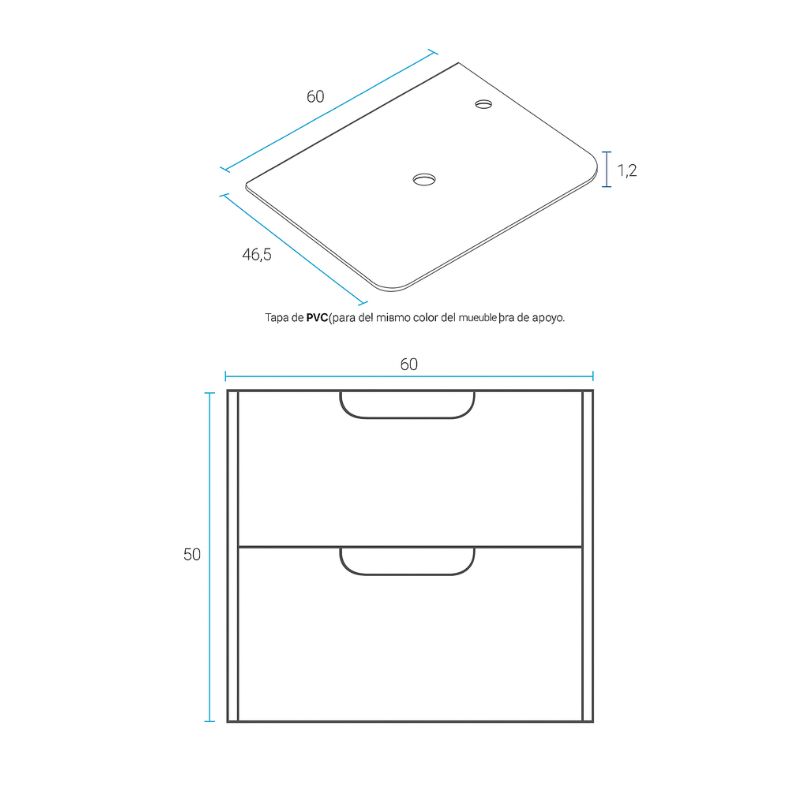 Vanitory Colgante C/Tapa Greco 60cm Blanco 2 Cajones Schneider